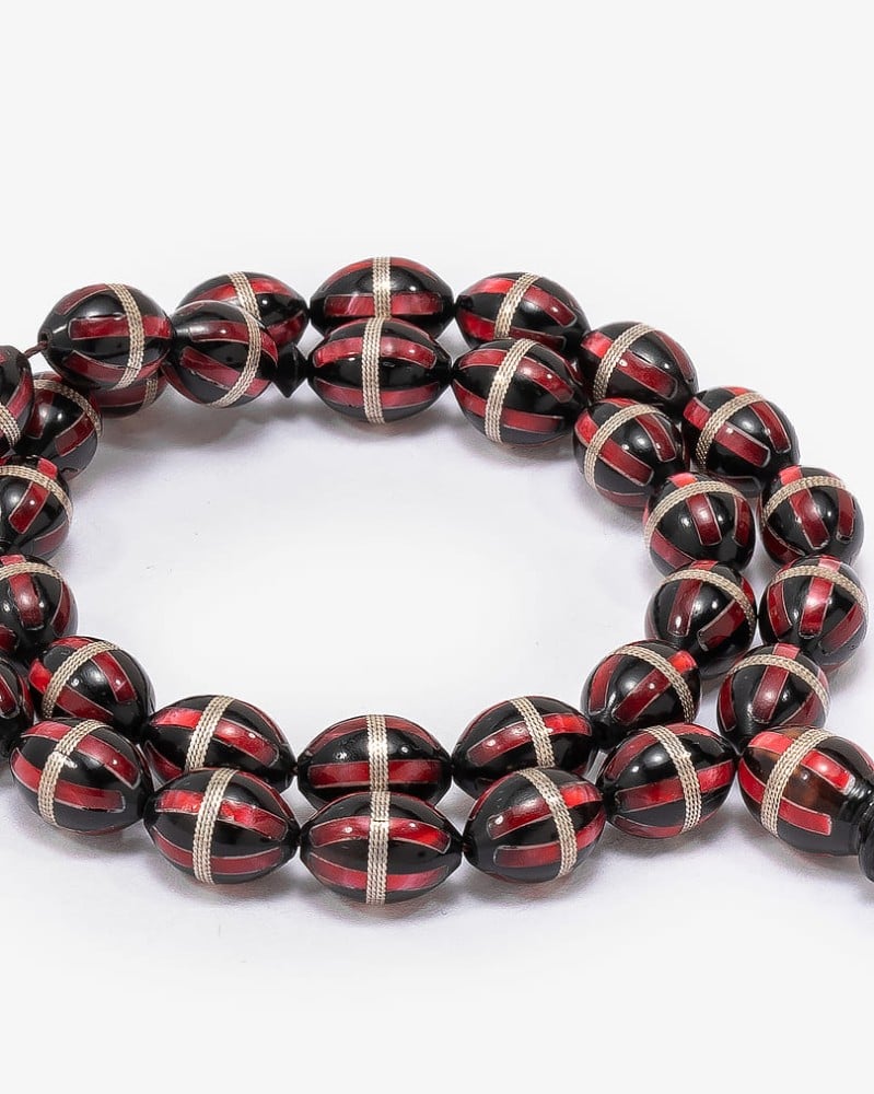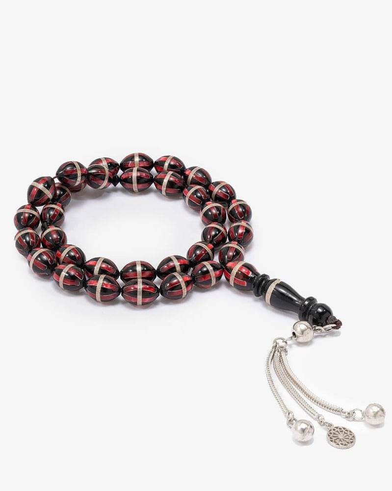 Enjoy luxury and elegance with a rosary made of natural cocoa wood engraved with pure silver and decorated with a red coral-like shape. With a soft oval design that adds a touch of beauty and luxury. Make it part of your formal and elegant look, and enjoy its beautiful and distinctive appearance that suits all tastes.