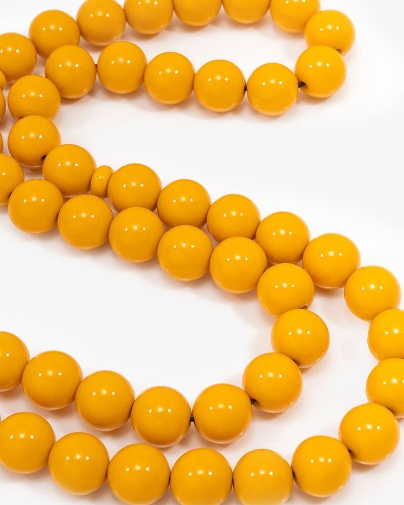 A distinctive saffron-colored bakelite rosary with a metal tassel, expertly polished, circular in shape, soft to the touch, with attractive colors, with 51 10 mm beads, designed to show the elegance of its owner, his strong presence, elegance and high taste. It is one of the most beautiful, elegant and formal types of bakelite rosaries in its color and appearance to suit all tastes.