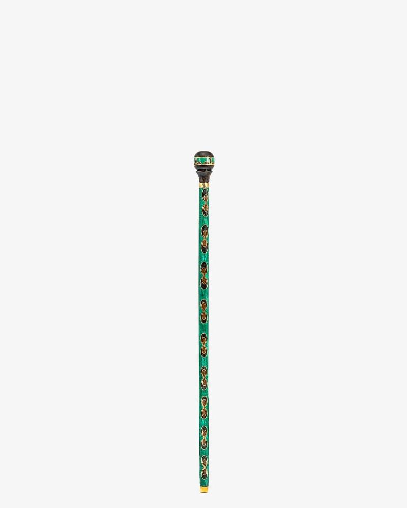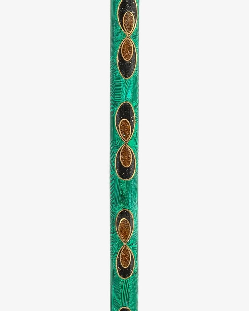 A crutch made of natural ebony wood decorated with malachite and amber, professionally engraved with copper and metal, soft to the touch, with a round handle, handmade by the most skilled craftsmen specialized in manufacturing crutches made of natural wood, and professionally polished, multi-use, slim, 61 cm long, suitable for social occasions for all tastes.