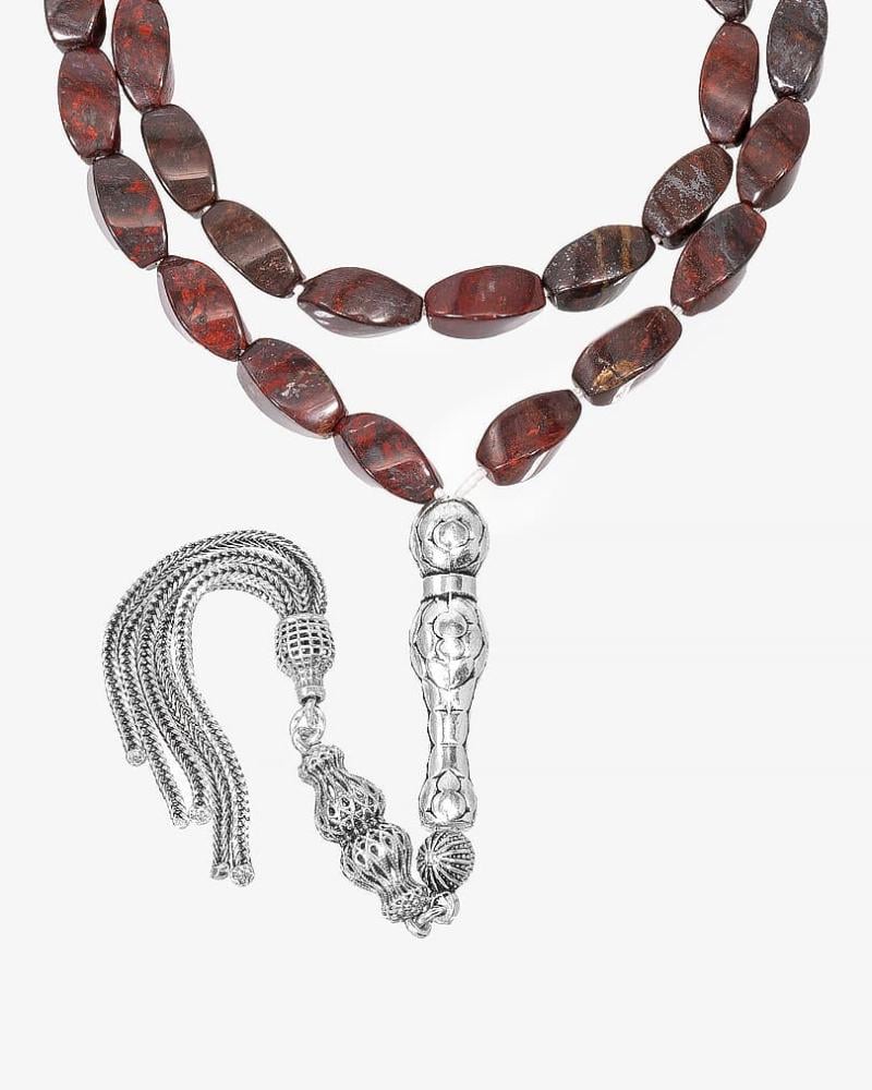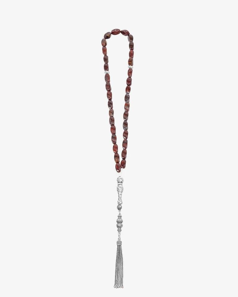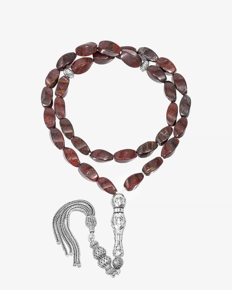 The distinctive brown jade stone rosary is charming and unique. It is meticulously polished, with its smooth corners and attractive colors that highlight the elegance, strength and refined taste of its owner. Its unique beauty and elegance make it stand out among the types of rosaries, as it is characterized by its formal designs and attractive colors. Simply put, it is the perfect choice that suits all tastes and ages.